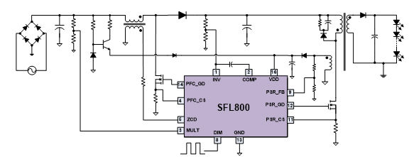 SFL800 具有PWM/模擬調(diào)光功能的高功率因數(shù)、無頻閃兩級(jí)組合控制LED驅(qū)動(dòng)芯片
