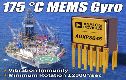 ADI近日推出首款也是唯一能在石油和天然氣鉆探設(shè)備常見的最高175攝氏度高溫環(huán)境下正常運行的MEMS陀螺儀ADXRS645。