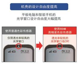 近年來,智能手機(jī)和平板電腦等配備顯示屏的設(shè)備開始搭載色彩傳感器,用來分析周圍的RGB成分,以此來自動調(diào)整顯示屏畫面,并根據(jù)照度調(diào)節(jié)顯示器的背光。