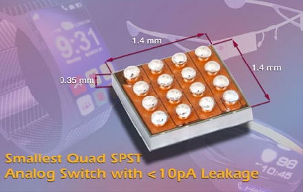 今天推的開關(guān)尺寸為1.4mm x 1.4mm,節(jié)距0.35mm,采用頂側(cè)疊層以提高耐用性,比最接近的競爭器件小50%,比采用標準QFN16封裝的器件小95%。DG2501、DG2502和DG2503尺寸較小,不到0.01μW的典型功耗可延長電池壽命,非常適合模擬前端的信號開關(guān)、可編程增益控制、采樣保持電路,以及智能手表、醫(yī)藥貼、健身監(jiān)測、傳感器和其他構(gòu)成物聯(lián)網(wǎng)(IoT)的類似產(chǎn)品里的多路模擬輸入復(fù)用。
