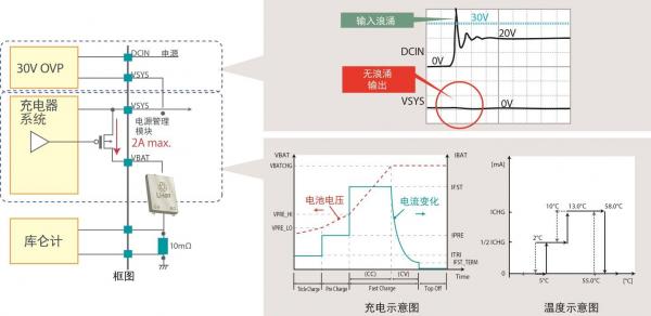 2.內(nèi)置帶30V過(guò)電壓保護(hù)功能的2A LB充電器,安裝面積更!便攜設(shè)備的電源多采用鋰離子電池和鋰聚合物電池。本產(chǎn)品內(nèi)置電池充電功能,更節(jié)省安裝面積。