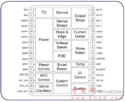 NXP公司的NXQ1TXA5是無線充電發(fā)送器,集成了功率控制,信號處理,片上電流和電壓測量等功能,待機功耗小于10mW,符合Qi標(biāo)準(zhǔn)V1.1.2.除了Qi線圈和諧振電容,所需外接元件不到10個,PCB面積小于2平方厘米.主要用在5V(USB供電)無線充電座,小型無線充電器,以及Qi無線充電器和智能手機.本文介紹了NXQ1TXA5主要特性和優(yōu)勢,框圖和Qi A5參考設(shè)計框圖.