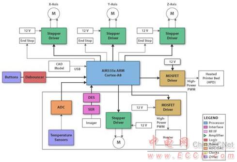 TI DLP 3D打印機(jī)總體解決方案采用DLP技術(shù)和Sitara AM335x ARM Cortex-A8處理器,本文主要介紹了DLP 3D打印機(jī)總體框圖。