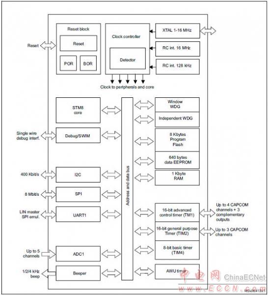 16 MHz advanced STM8 core with Harvard architecture and 3-stage pipeline