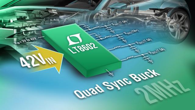 凌力爾特的 LT8602 是一款 42V 輸入、高效率、4 輸出單片同步降壓型開關(guān)穩(wěn)壓器。其 3V 至 42V 輸入電壓范圍使該器件非常適合汽車應(yīng)用,這些應(yīng)用必須穩(wěn)定地通過最低輸入電壓低至 3V 的冷車發(fā)動和停-啟情況以及超過 40V 的拋載瞬態(tài)。正如我們在圖 1 中所能看到的那樣,其 4 通道設(shè)計提供 4 個獨立輸出,高壓 2.5A 和 1.5A 通道以及兩個較低電壓的 1.8A 通道,可提供低至 0.8V 的電壓,從而使該器件能夠驅(qū)動現(xiàn)有之電壓最低的微處理器內(nèi)核。其同步整流拓?fù)渚邆涓哌_(dá) 94% 的效率,而突發(fā)模式 (Burst Mode®) 工作在無負(fù)載備用情況下保持靜態(tài)電流低于 30µA (所有通道均接通),從而使該器件非常適合始終保持接通的系統(tǒng)。