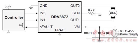 圖2.DRV8872典型應用框圖