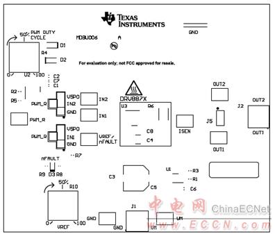 圖5.評估模塊DRV8872EVM PCB元件布局圖 |
