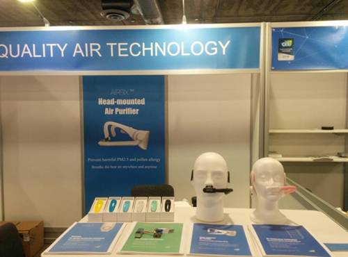 來(lái)自深圳的創(chuàng)業(yè)公司Quaility Air展出了他們研發(fā)的可穿戴空氣檢測(cè)器和頭戴式空氣凈化器,完全采用獨(dú)創(chuàng)的技術(shù)。按照他們的說(shuō)法,要讓所有人能隨時(shí)隨地知道空氣質(zhì)量并且隨時(shí)隨地呼吸到最潔凈的空氣。