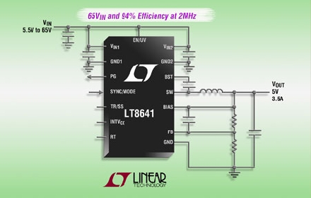 Linear推出3.5A、65V 同步降壓型開關(guān)穩(wěn)壓器 LT8641。該器件采用獨(dú)特的 Silent Switcher® 架構(gòu),并結(jié)合了擴(kuò)展頻譜頻率調(diào)制功能,即使在開關(guān)頻率超過(guò) 2MHz 時(shí),也能使 EMI / EMC 輻射降低超過(guò) 25dB,從而可輕松通過(guò)汽車 CISPR25 Class 5 峰值和平均值限制的要求。在 2MHz 開關(guān)頻率時(shí),該器件的同步整流可提供高達(dá) 94% 的效率。其 3V 至 65V 輸入電壓范圍使 LT8641 非常適合單節(jié)或兩節(jié)電池的汽車 / 交通運(yùn)輸和工業(yè)應(yīng)用。