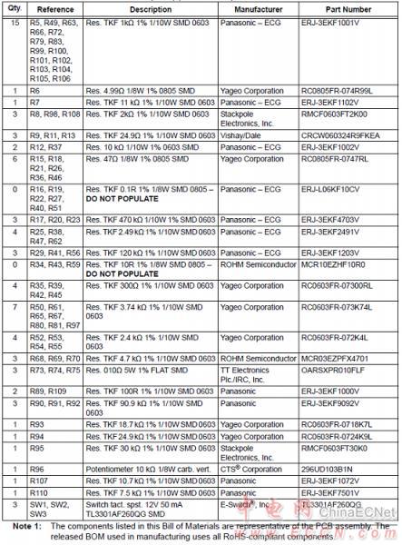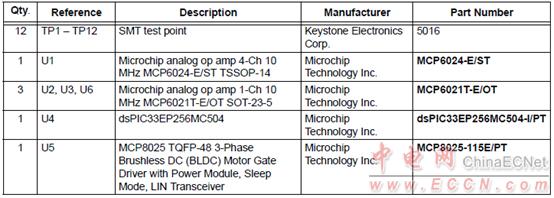 MCP8025 TQFP BLDC馬達(dá)驅(qū)動評估板材料清單: