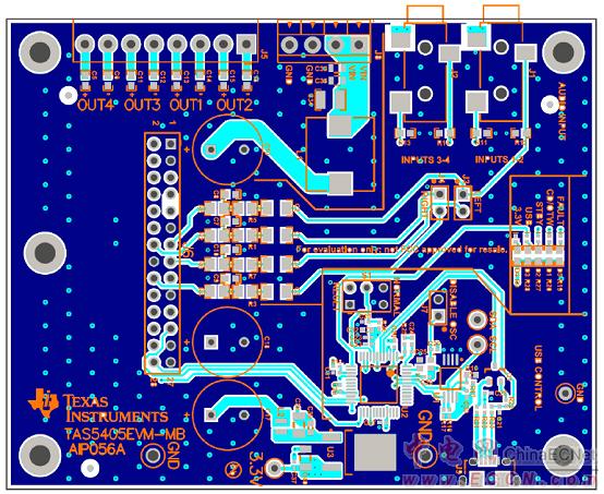 圖4評估板TAS5404Q1EVM放大器PCB布局圖(頂層)