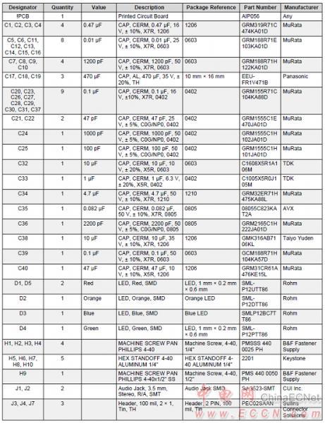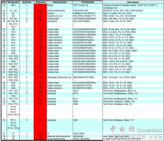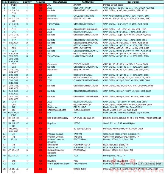 100W汽車放大器參考設(shè)計PMP9484材料清單(BOM):
