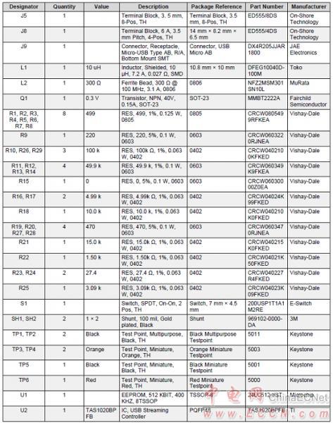 評估板TAS5404Q1EVM主PCB材料清單: