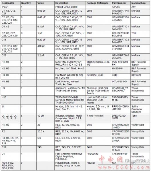 評估板TAS5404Q1EVM放大器PCB材料清單: