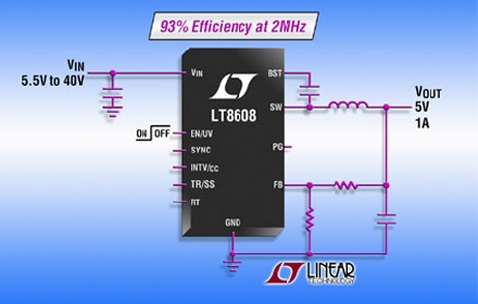 Linear推出1.5A、42V 輸入同步降壓型開(kāi)關(guān)穩(wěn)壓器 LT8608。該器件采用獨(dú)特的同步整流拓?fù),?2MHz 切換時(shí)可提供 93% 的效率,從而使設(shè)計(jì)師能夠避開(kāi)關(guān)鍵噪聲敏感頻段 (例如 AM 無(wú)線電頻段),同時(shí)實(shí)現(xiàn)占板面積非常緊湊的解決方案。突發(fā)模式 (Burst Mode®) 工作在無(wú)負(fù)載的備用情況下可保持靜態(tài)電流低于 2.5µA,從而使該器件非常適合始終保持接通的系統(tǒng)。其 3V 至 42V 輸入電壓范圍非常適合汽車應(yīng)用,因?yàn)檫@類應(yīng)用必須在冷車發(fā)動(dòng)和車輛停-啟場(chǎng)合以及最小輸入電壓低至 3.0V 和拋載瞬變超過(guò) 40V 的情況下進(jìn)行調(diào)節(jié)。其內(nèi)部 2A 開(kāi)關(guān)能夠提供高達(dá) 1.5A 的連續(xù)輸出電流。LT8608 可在所有情況下保持僅為 200mV (在 500mA) 的最低壓差電壓,從而能夠在汽車?yán)滠嚢l(fā)動(dòng)等情況下有出色表現(xiàn)。擴(kuò)展頻譜頻率調(diào)制和特殊設(shè)計(jì)技術(shù)提供了低 EMI 工作,以在汽車和工業(yè)環(huán)境中最大限度地減輕噪聲問(wèn)題。此外,快速的最短接通時(shí)間僅為 45ns,這使該器件在 16V 輸入至 1.5V 輸出時(shí)能夠以 2MHz 恒定頻率切換。LT8608 的 10 引線耐熱性能增強(qiáng)型 MSOP 封裝和高開(kāi)關(guān)頻率允許使用小型外部電感器和電容器,從而構(gòu)成了占板面積緊湊和高熱效率的解決方案。