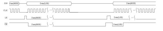 4. data(B)傳送完成后,由LE產(chǎn)生latch信號,鎖存data(B),并接著傳送data(C)
