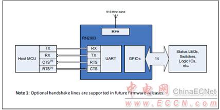 圖2. RN2903模塊應(yīng)用框圖