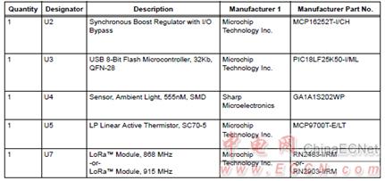 LoRa™ Mote演示板材料清單: