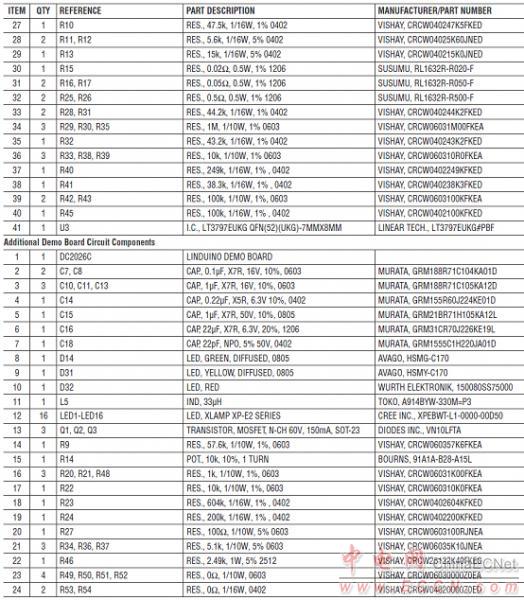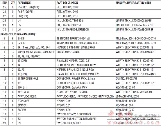 演示板DC2218A材料清單: