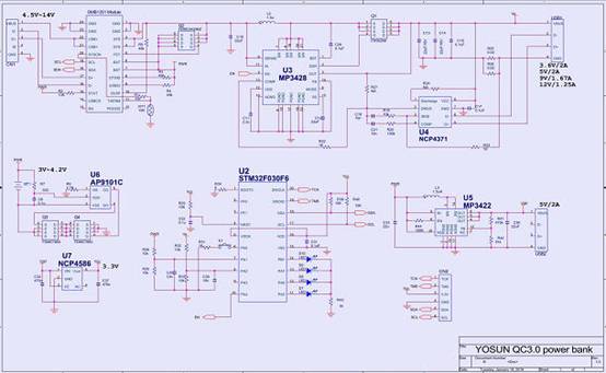 移動電源輸入除適用一般5V適配器外,最大特點是支持QC3.0適配器,讓移動電源本身電池也具備快充功能,最大充電電流更高達4.5A,可于半小時內讓移動電源充電達80%電量。系統(tǒng)中MCU內建程序包含充、放電燈號顯示、電量顯示與相關保護功能。