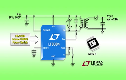 LT8304 采用小型耐熱增強(qiáng)型 SO-8 封裝。擴(kuò)展和工業(yè)溫度級(jí)版本在 –40°C 至 125°C 結(jié)溫范圍內(nèi)工作。千片批購價(jià)為每片 3.55 美元。