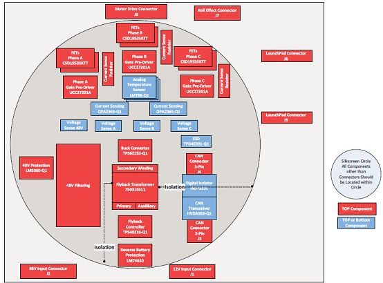 圖6.TIDA-00281參考設(shè)計板簡化平面圖