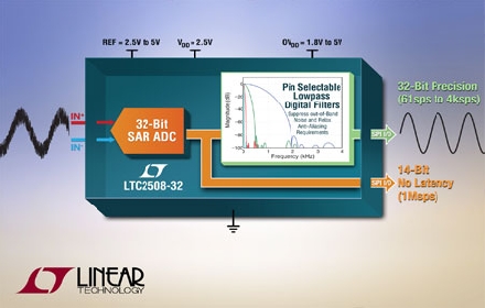 照片說明:具可配置數(shù)字濾波器的 32 位過采樣 ADC