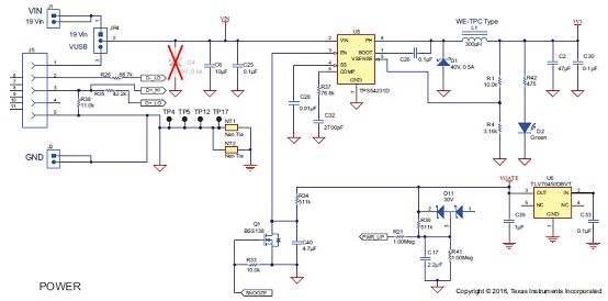 圖8.評(píng)估板bq501210EVM-756電路圖:電源電路