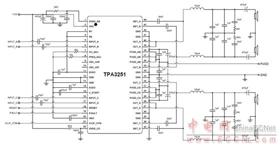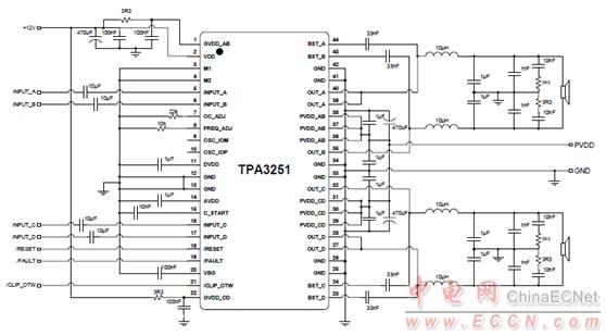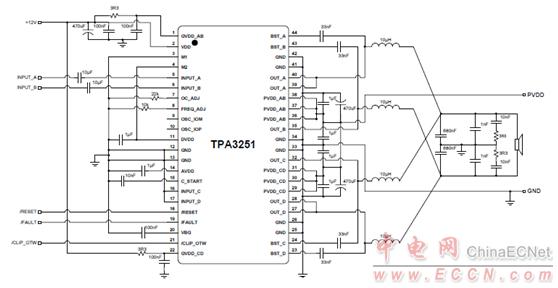 圖5.TPA3251差分(2N)PBTL應用電路圖