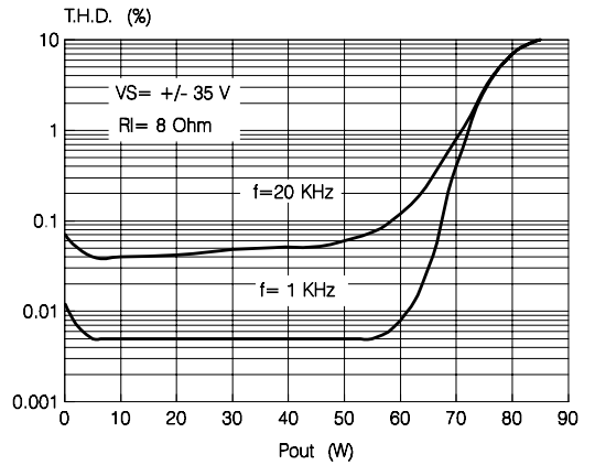 圖 2:高功率AB級(jí)總諧波失真和功率性能對(duì)比
