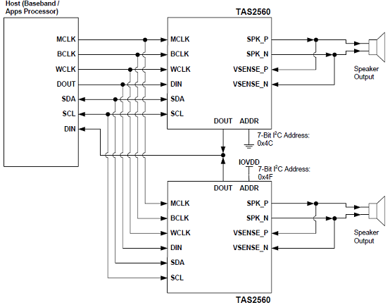 • Stereo Configuration Using Two TAS2560Devices