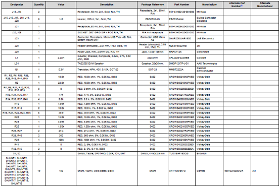 5.6W D類音頻放大器評估模塊TAS2560 EVM材料清單: