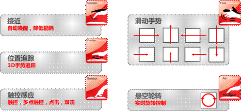 其中比較有代表性的,要數(shù)Microchip公司的GestIC技術(shù)。它基于電場感應(yīng)的原理,在電子設(shè)備周邊的空間中形成一個電場。當(dāng)手部在空間中運動時會使電場發(fā)生畸變,布設(shè)在電場中的電極接收器會感應(yīng)到這種變化,并通過專門的控制芯片進(jìn)行信號處理,對手勢進(jìn)行識別和運動追蹤,并將數(shù)據(jù)傳遞給電子設(shè)備做出響應(yīng)。Microchip代理商世健公司產(chǎn)品經(jīng)理介紹,與采用攝像頭的光學(xué)3D手勢識別技術(shù)相比,GestIC技術(shù)最大的優(yōu)勢在于功耗極低,能耗節(jié)省多達(dá)90%,同時能避免環(huán)境光等外部因素的干擾,雖然是一個近場識別技術(shù),但其在家庭自動化、家電控制、音響系統(tǒng)、電腦及配件、汽車電子等方面,會有諸多應(yīng)用場景。