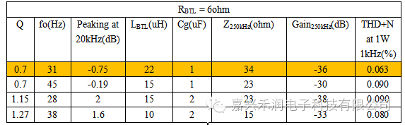 表4 免濾波調(diào)制方式8ohm負(fù)載的LC濾波