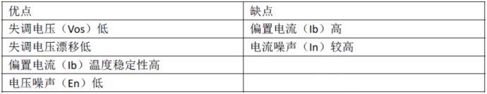 雙極性晶體管(BJT)輸入,輸入級使用雙極性晶體管,其特性如下: