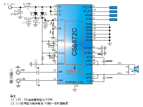 CS8672C 是一款內(nèi)置BOOST升壓模塊,32W單聲道R 類音頻功率放大電路。內(nèi)置大功率BOOST升壓模塊,在兩節(jié)鋰電池串聯(lián)或者12V電源平臺下,可以為4Ω 負(fù)載揚(yáng)聲器提供最高32W的連續(xù)功率.是針對家庭音響內(nèi)低音單元或者移動類家庭音響優(yōu)秀的功率輸出平臺.CS8672C無需外圍散熱裝置,簡單的外圍設(shè)置,可以大大提高生產(chǎn)加工效率。CS8672C內(nèi)置了過流保護(hù),短路保護(hù)和過熱保護(hù),有效的保護(hù)芯片在異常的工作條件下不被損壞。