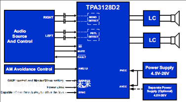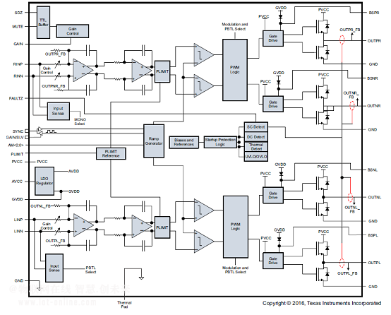 圖1.TPA3128D2功能框圖