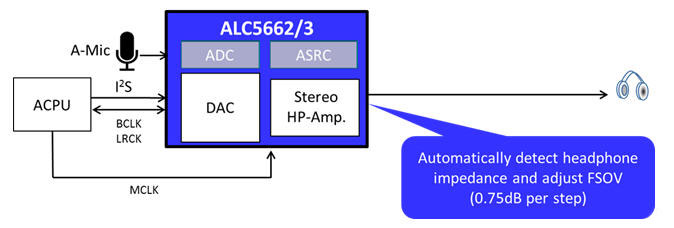 同時,ALC5662/ALC5663還內(nèi)建充電泵(Charge pump),并將取樣頻率轉(zhuǎn)換器(Asynchronous Sample Rate Converter – ASRC)整合至芯片內(nèi),大幅減少了系統(tǒng)物料列表成本(BOM cost),也大幅降低系統(tǒng)上的設(shè)計復(fù)雜度,無須特別外加頻率震蕩器以及升壓降壓轉(zhuǎn)換器,就可以提供輸出直流偏壓為0V,輸出幅度為2Vrms的音頻。