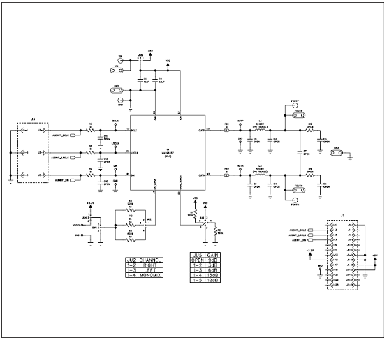 圖5.MAX98357A/MAX98357B增益6dB(左路/2+右路/2)PCM工作電路