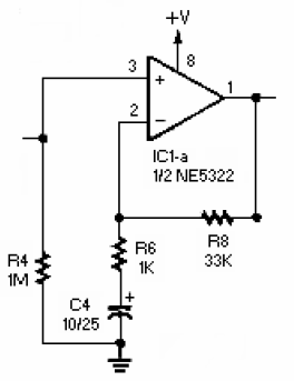 預放大電路是一個運放電路,并不對音頻做反向處理,看起來像預放大。這個電路是必須的,因為這個噪音的音頻信號從麥克風過來之后非常微弱,必須經(jīng)過放大,才可以使用。預放大的增益由R8和R6的比值決定,通過改變這兩個電阻值可以控制音頻信號的幅度,這個信號將被送入相位反轉電路。