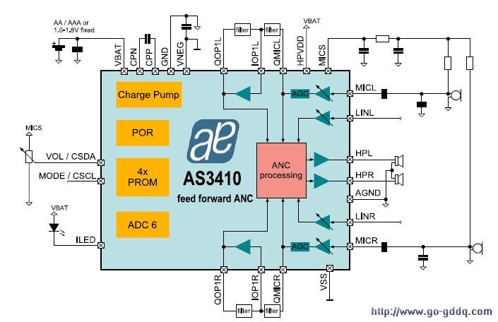 AS3410前饋式主動(dòng)降噪應(yīng)用方案