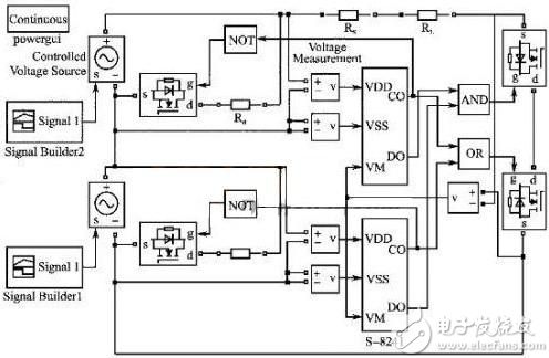 圖5 2節(jié)鋰電池串聯(lián)均充保護仿真模型