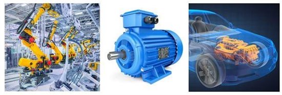 旋變以上的特性使其成為工業(yè)、汽車應(yīng)用中最理想的傳感器之一,如圖5所示。在工業(yè)應(yīng)用中,旋變廣泛應(yīng)用于伺服控制系統(tǒng)(如電梯)、工業(yè)機(jī)器人、交流變頻驅(qū)動、塑壓系統(tǒng)、紡織系統(tǒng)、冶金系統(tǒng)等。在汽車應(yīng)用中,旋變廣泛應(yīng)用于電動、混合動力汽車的牽引逆變器、暖通空調(diào)系統(tǒng)、起停發(fā)電機(jī)和助力轉(zhuǎn)向系統(tǒng)等。