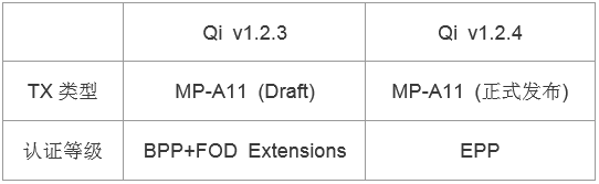 關(guān)于蘋果7.5W發(fā)射端認(rèn)證方面,相對(duì)于Qi v1.2.3,Qi v1.2.4有以下更新: