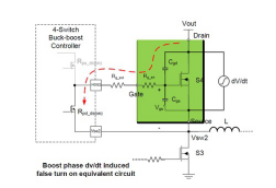 然后,這一問(wèn)題在4開(kāi)關(guān)降壓-升壓轉(zhuǎn)換器中翻了一番,因?yàn)樗袃蓚(gè)階段——降壓和升壓。當(dāng)設(shè)計(jì)人員直接將降壓轉(zhuǎn)換器的電路參數(shù)復(fù)制到4開(kāi)關(guān)降壓-升壓轉(zhuǎn)換器的升壓段時(shí),就會(huì)產(chǎn)生錯(cuò)誤。隨著這種拓?fù)浣Y(jié)構(gòu)在應(yīng)用中越來(lái)越受歡迎,了解dv/dt電感導(dǎo)通問(wèn)題變得越來(lái)越重要。