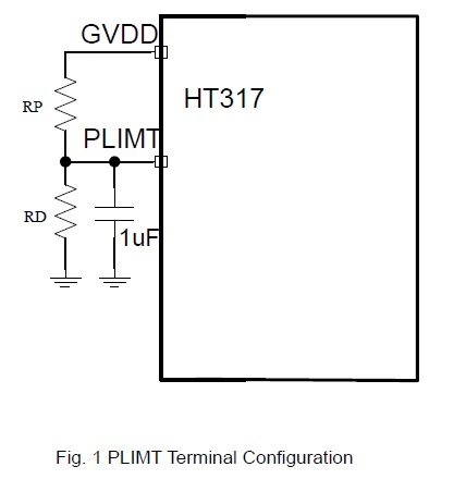 限幅值即在功率限制功能下,輸出擺幅被限制的最大值,該值可通過(guò)PLIMT引腳設(shè)置,如下圖所示。