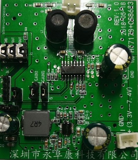 固定21倍增益,防破音,AB/D切換,電源自動增益調(diào)節(jié),功率限制,多階電源自適應(yīng)功能 內(nèi)置BOOST升壓模塊,恒定10W輸出功率R類單聲道音頻功率放大器 |