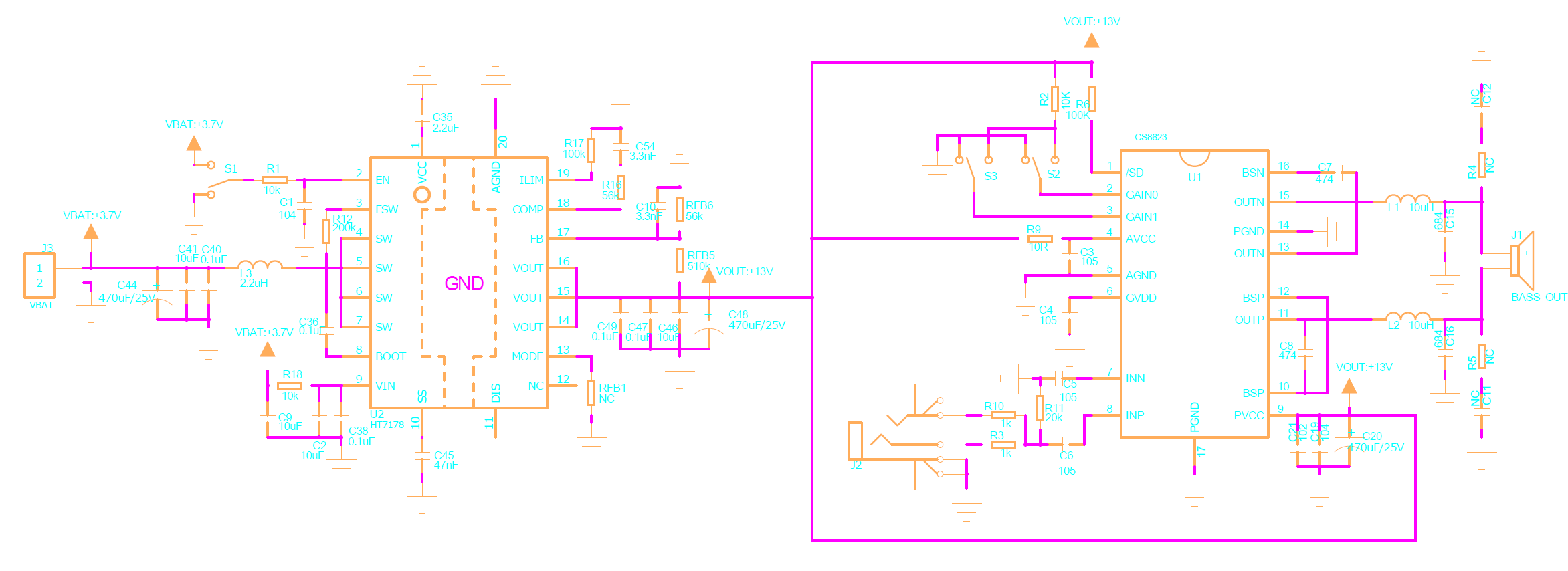 7.0W/2.8V-5.5V(內(nèi)置升壓模塊)/4Ω |