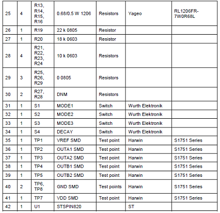 ST公司的STSPIN820是高速高分辨率步進馬達驅動器,集成了控制邏輯和低RDSon功率級,集成的控制器實現了有固定OFF時間PWM電流控制和高達1/256步的微步距分辨率,并提供了完整的保護特性包括過流,超溫和短路保護.工作電壓7-45V,最大輸出電流1.5Arms,主要用在3D打印機,醫(yī)療設備,工業(yè)2D打印機,縫紉機,CCTV,安全和球型攝像機,ATM和現鈔處理機,辦公和家庭自動化設備,POS和機器人.本文介紹了STSPIN820主要特性,框圖和STSPIN820主要特性,電路圖,以及基于STSPIN820步進馬達擴展板X-NUCLEO-IHM14A1主要特性,電路圖,材料清單.
