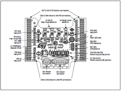 圖6.步進馬達擴展板X-NUCLEO-IHM14A1開關和連接器外形圖